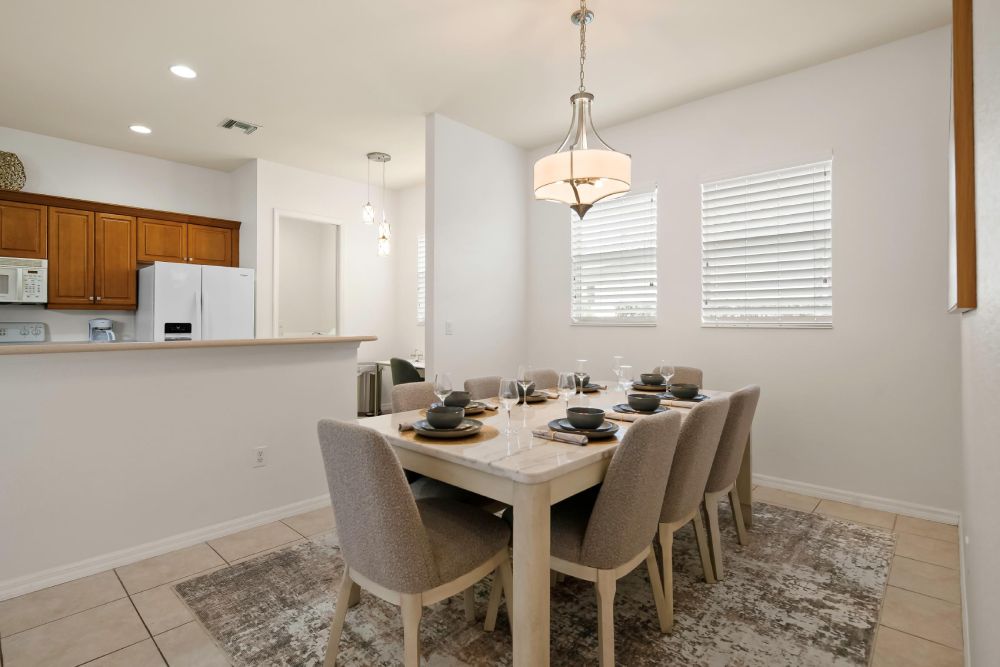Step inside to find a bright, open-concept layout with two separate living areas, high ceilings, and tile flooring throughout. The fully stocked eat-in kitchen features granite countertops, stainless steel appliances, and a breakfast bar, perfect for cooking meals together before a day of exploring.