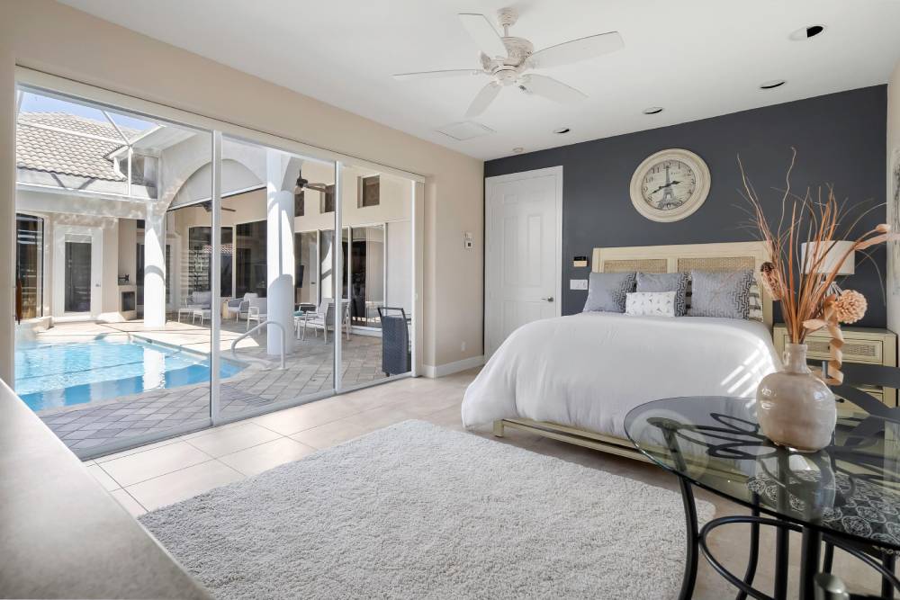 The heart of the home is a private, fully enclosed courtyard featuring a heated pool and spa, outdoor kitchen, and plenty of seating to soak up the Florida sun or unwind under the stars. French doors lead directly from the master suite into the courtyard, creating a seamless indoor-outdoor living experience.